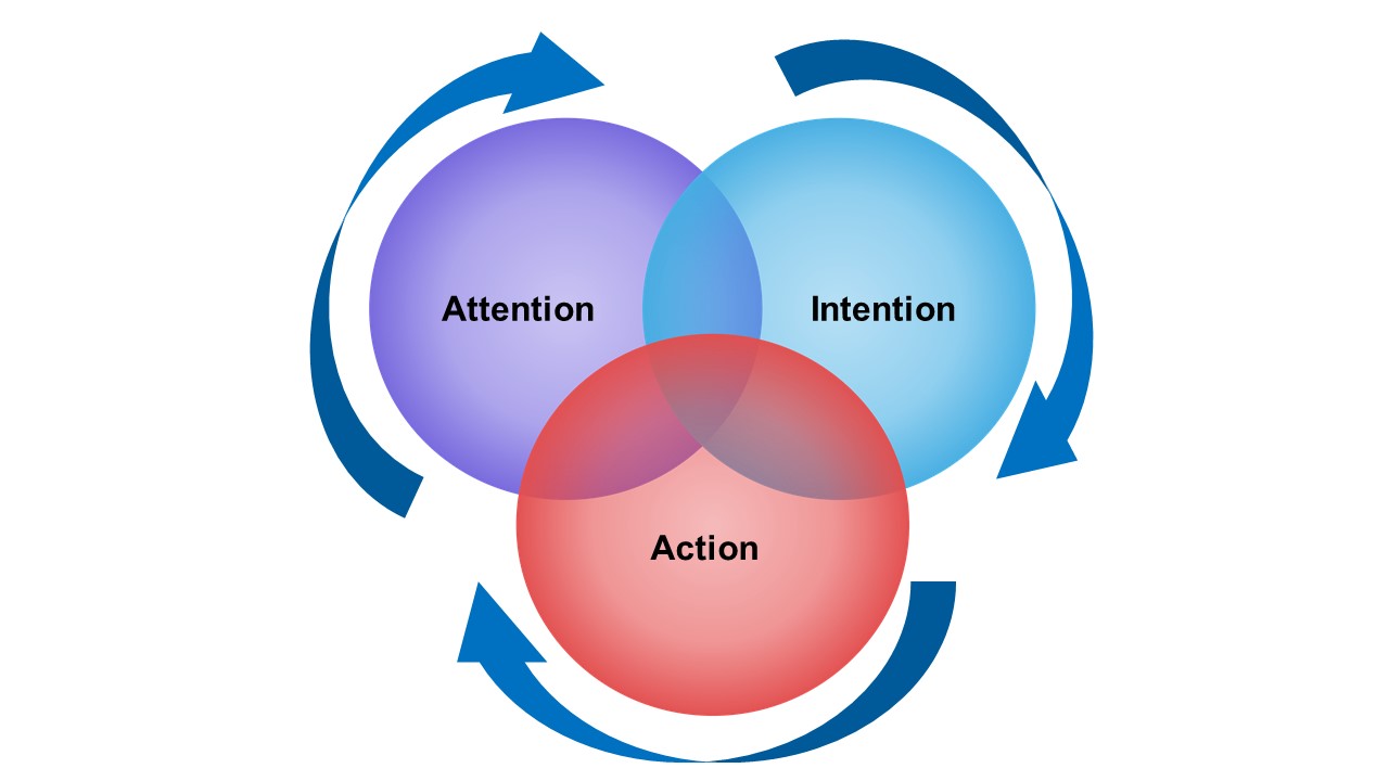 If you feel frozen in awareness (attention), gently challenge yourself (intention) to take one small step forward (action).